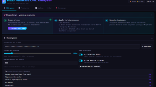 Інше YouTube Channel Analyzer: аналізуйте YouTube-канали для SEO та просування Практичний аналізатор YouTube-каналів, створений для фахівців з SEO та маркетологів.… 012.03.20265 min read